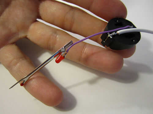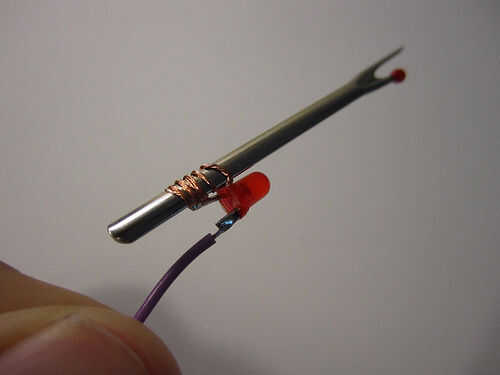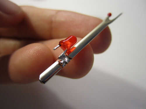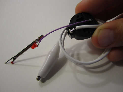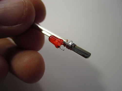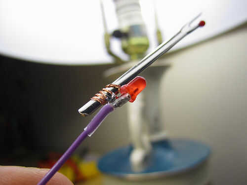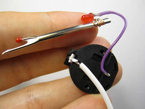 Corte un pedazo corto de alambre y la soldadura de un extremo a la otra pierna (negativo) del LED y el otro extremo a la conexión negativa en su moneda de la célula batería titular.