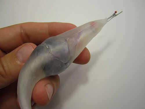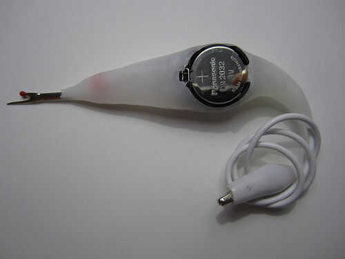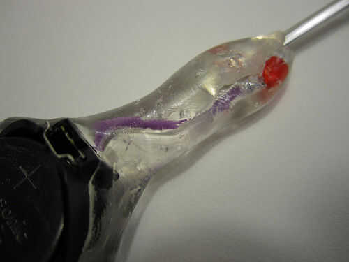 Trabajando rápidamente, pero no destacando, forma el grupo de shapelock alrededor de la punta del destripador de la costura, el soporte de la batería y la pinza. Ver fotos de la forma final.