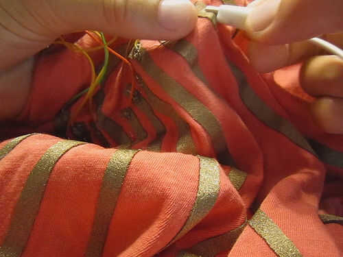 Cuando llegue el momento y ha cosido una conexión con el hilo conductor y está conectado a partes del circuito que no debería estar tocando, use su medidor de continuidad ripeo de costura para deshacer la costura para que puedan ver cuando lo has desconectado con éxito. Recuerde a la pinza de cocodrilo a una parte del circuito que desee desconectar antes de empezar a rasgar la costura.
