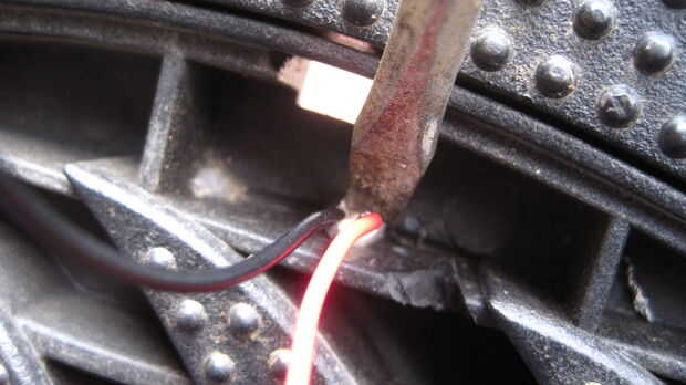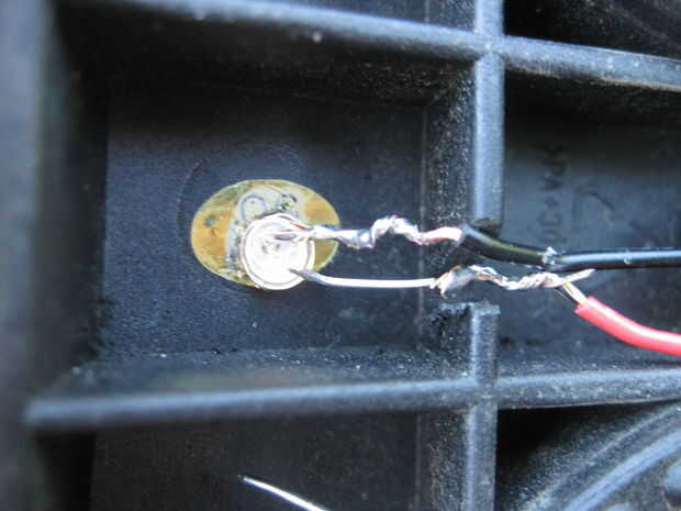 En el interior de la ribstick hice 5 marcas alrededor de las ruedas.  Usé el taladro y una pulgada de 3/16 broca para cortar los agujeros.  Cuando pegar los LEDs a través de la visera en la parte inferior debe dejar de ir a través de todo el camino.  Si no van entonces a empujar con un destornillador de cabeza plana hace que los LEDs no escapo al suelo cuando el tablero está inclinado todo camino a la.