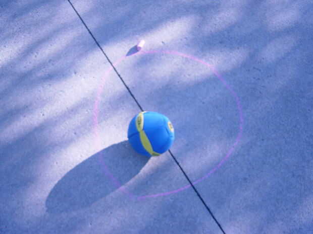 1. usando la tiza, dibuja un círculo en medio de la corte. Se trata de la zona que la bola se coloca para teniendo.