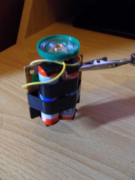 Añadir cinta de doble cara en la parte posterior de las baterías e inserte a través del orificio en la parte inferior de la lata. Pegarlo a la pared opuesta del agujero del bebe, y luego como su víctima recoge la lata e inclina hacia ellos la poder se ríe/aullido marca en ellos!