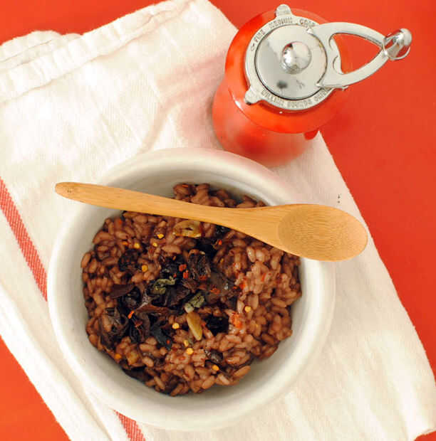 - Alterna 1/2 taza de caldo y el vino, seguir añadiendo líquido y removiendo para absorber hasta que todo el líquido ha sido añadido.