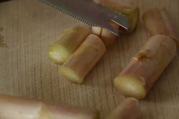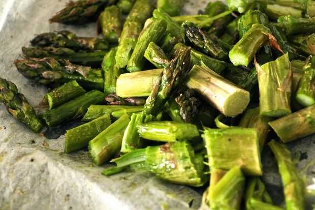 5. después de conseguir los espárragos del horno, cortar en trozos y reservar
