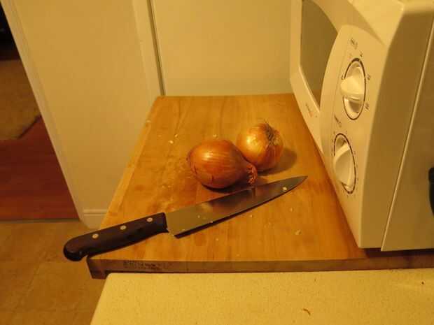 Cuadro 2. Cortar en cuadritos la cebolla así, no necesitan ser del mismo tamaño que el ajo tiene un sabor más débil en comparación con el ajo, pero es importante tenerlos en un tamaño relativamente uniforme para que todo puede cocinar uniformemente.