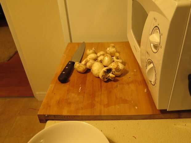 Cuadro 4. Rebanar los champiñones en trozos iguales de tamaño y mover a otro recipiente.
