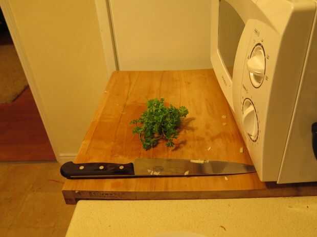 Cuadro 3. Cortar el perejil más o menos, usted no tiene que preocuparse sobre ellos es demasiado grande como se marchita el perejil en la sartén caliente. La cebolla ajo y perejil deben ahora todos retirar a un bol, las setas a ir en la bandeja un poco más tarde entonces el ajo y cebolla por lo que es una buena idea para mantenerlos separados en este momento.
