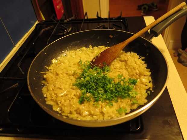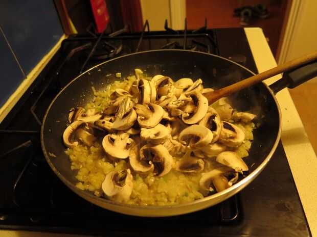 La diversión del pedacito. importantes piezas para recordar en esta etapa están que usted quiere dorar la mantequilla muy ligeramente antes de poner la cebolla y el ajo, mantequilla Browned se produce este aromático sabor nuez que ayudará realmente el plato. También para que el ajo y la cebolla y transparente antes de añadir las setas.