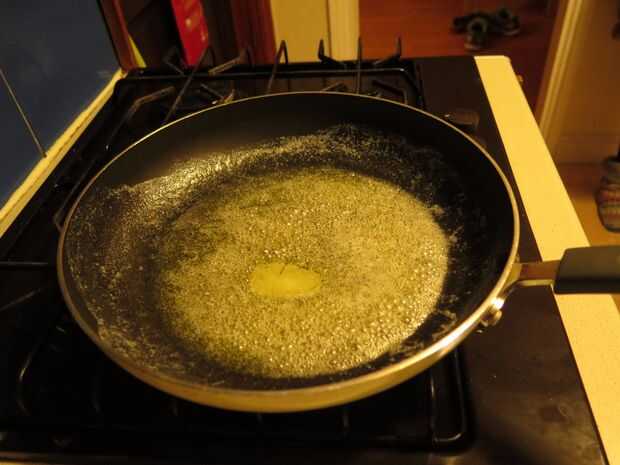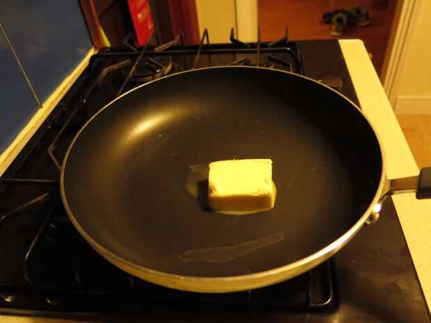 Cuadro 1. Poner la mantequilla en una sartén lo suficientemente grande para acomodar todos los ingredientes.