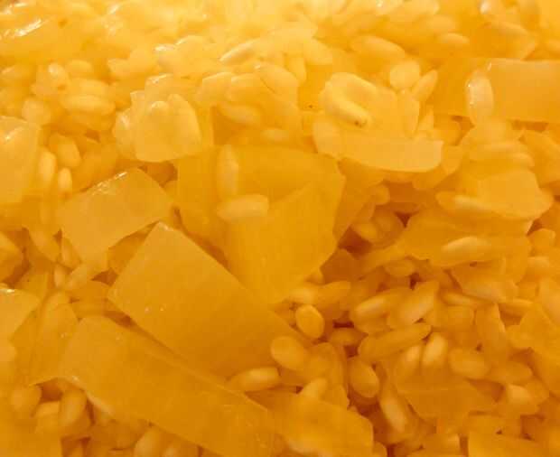 1. Agregar el arroz Arborio en la cebolla y mezcla de mantequilla, remover y microondas durante 35 segundos calentar los granos solo un poquito