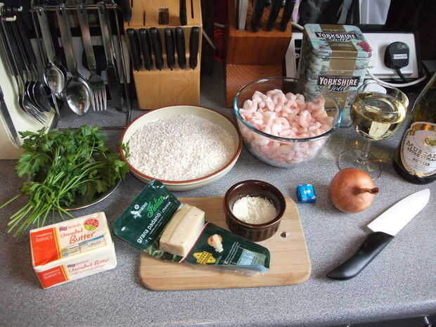 400g (14oz) de arroz Arborio (lo que sea, utiliza un arroz de risotto bueno, no un grano largo)