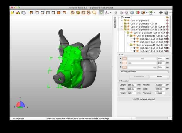 Utilicé netfabb básico para cortar la cabeza en partes más pequeñas