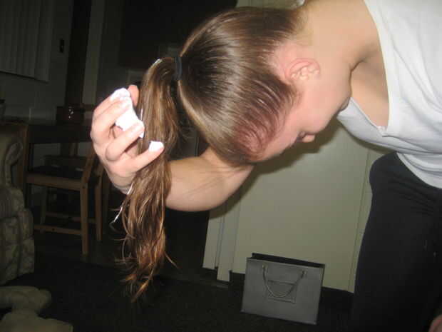 Rizar su cabello durante la noche con un calcetín (3 / 7 paso)