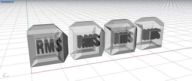 Esta forma particular se diseña en Rhinoceros 3D de McNeel (esto puede también ser fácilmente diseñado en Autodesk fusión - un programa libre y código abierto) y luego exportado a un archivo STL, para ser importados al sistema Connex que importará el archivo de STL para la impresión a la impresora de Objet. La fuente que se utiliza fue nuestro texto del logo de RMS propiedad de sistemas modulares flexibles.