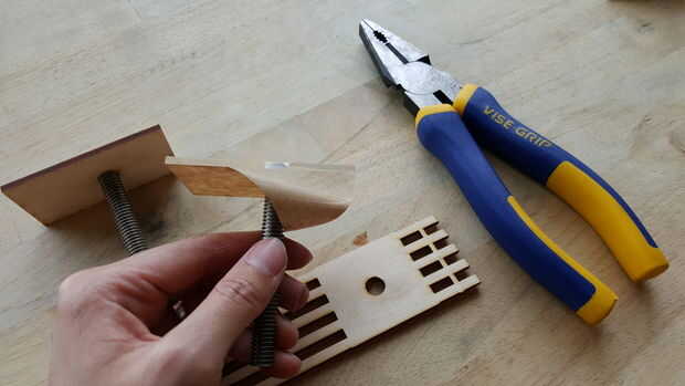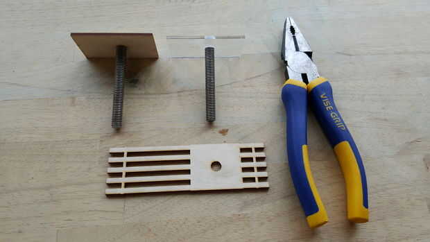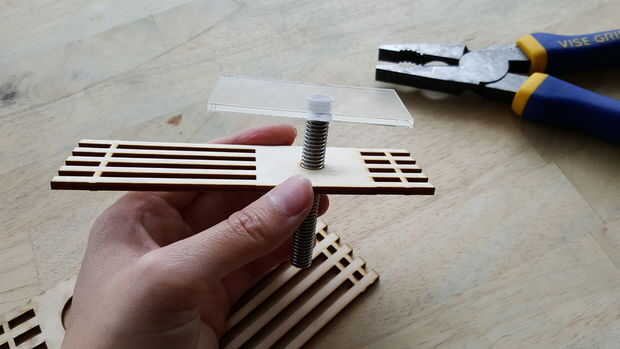 El montaje de las placas de inyección varias fueron hecho con madera y acrílico de 3,3 mm para jugar con la estética de la pieza. Esto es para probar los distintos materiales antes de construir la versión final en el metal.