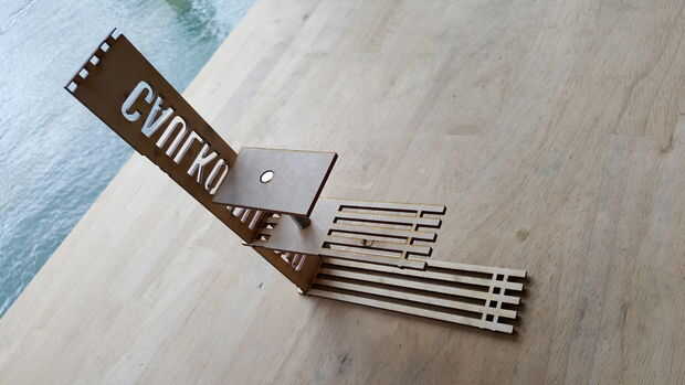 Una vez que todas las decisiones fueron tomadas, y las piezas encajadas entre sí. Otra versión fue hecha para la finalización de la versión constructable. Esta versión fue una combinación de los dos materiales de madera y acrílico. La madera en la versión mayor representa el metal.
