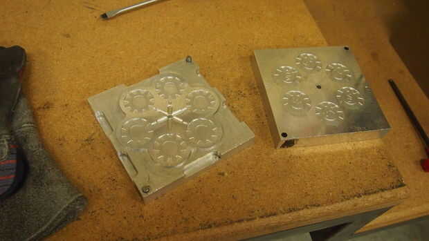 Después ajuste el molde sobre la placa inferior y el calor en el material su molde se hace de. Ajustar la fuerza de la pinza y 10 toneladas, girando el mando de la fuerza de la almeja. 10 toneladas es la máxima fuerza que puede ser colocado en la boquilla de inyección, sin dañar la boquilla de sujeción. Mientras tanto, ajuste la presión piloto a 6.