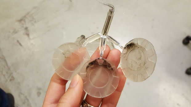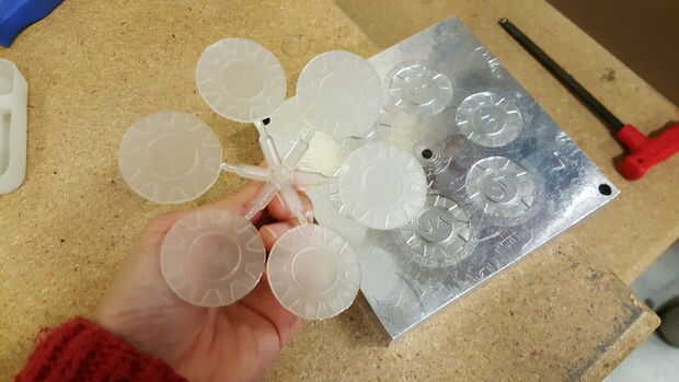 Haciendo el molde toma muchos intentos y tal vez unos funcionamientos de ensayo de errores antes de que uno sabría lo que es el mejor momento para permitir que el plástico inyectado llenar el molde. Ser sugerido para también limpiar la tolva completamente antes de hacer los moldes, de esta manera, usted tendría una inyección de color puro. Sin embargo, estos test ejemplos también mostrar el efecto smokey de cómo el plástico entra en los moldes.
