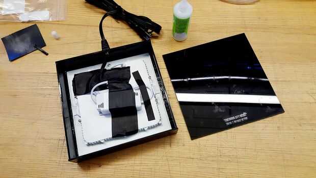 Para el diseño del sistema de caja de luz intercambiable, compramos un sistema de caja de luz LED que se utilizarían para instalar en cocinas y luces empotradas. Esto aseguró la luz de 6000 K blanco blanco que fue hecha para ofrecer a través del LED. Mayoría de los kits LED no viene con los enchufes de pared, por lo tanto, se sugiere comprar esto y añadir un interruptor entre el kit de LED con el cable de corriente. Electrónica básica es necesaria antes de hacer este ajuste hacia fuera.
