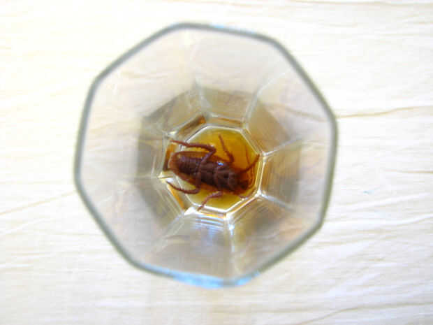 Su objetivo de tomar un café con un roach, en la parte inferior del mismo...! La cucaracha no va a la boca, es pegajoso en el fondo del vaso. Cuando se termina su trago, él verlo!