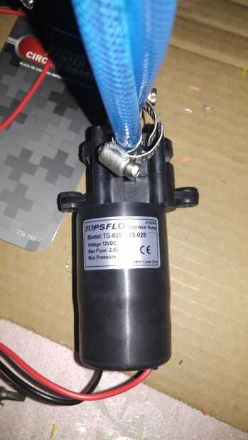 Desde la línea de 1/4" es demasiado grande para la entrada y salida del motor, utilicé un trozo de cinta adhesiva y envuelta alrededor del agujero una vez. Entonces pude apretar la manguera y apriete con las abrazaderas de manguera. Actualmente tengo una boquilla en la que se utiliza para inflar el equipo de deportes.