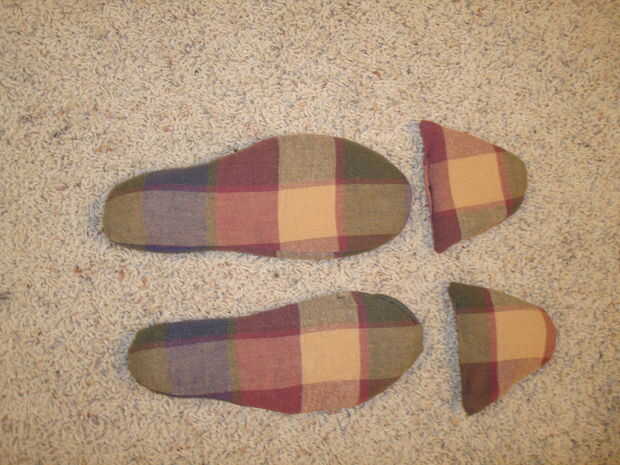 He hecho dos variedades - una para la suela de su zapatilla, para usar mientras sentado (es un poco incómodo caminar sobre los rellenos y arroz crudo) y la otra para poner en la parte superior de los dedos del pie (que puede llevar mientras camina alrededor).