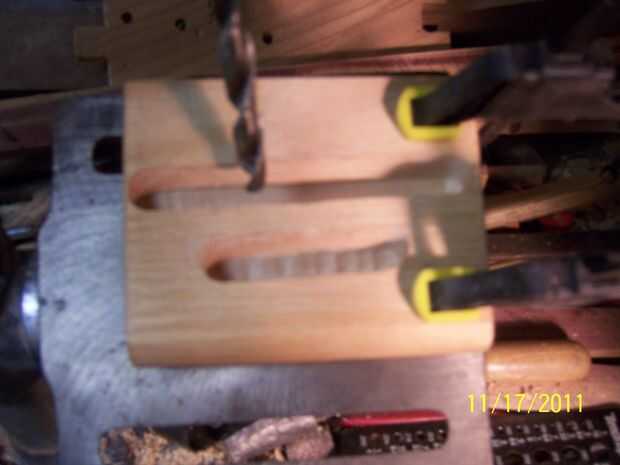me encontré con la broca de 1/2 pulgada para adaptarse muy bien para las ranuras. Este se adapta mi iPod Touch con su caucho del silicio del caso sigue. Si desea usar el soporte sin un caso, entonces deberás perfore un pequeño surco, emparejar el espesor que Pod. Tienes que empezar por un lado, profundizar alrededor de 1/2 pulgada. luego mover y volver a sujetar la madera hasta que han creado un canal que se ajuste a su vaina. Limpiar las virutas de madera entre los agujeros moviendo cuidadosamente la madera de izquierda a derecha. Esto suavizar la ranura y crear un canal liso. También puede utilizar un cincel afilado de madera y martillo para hacer lo mismo.