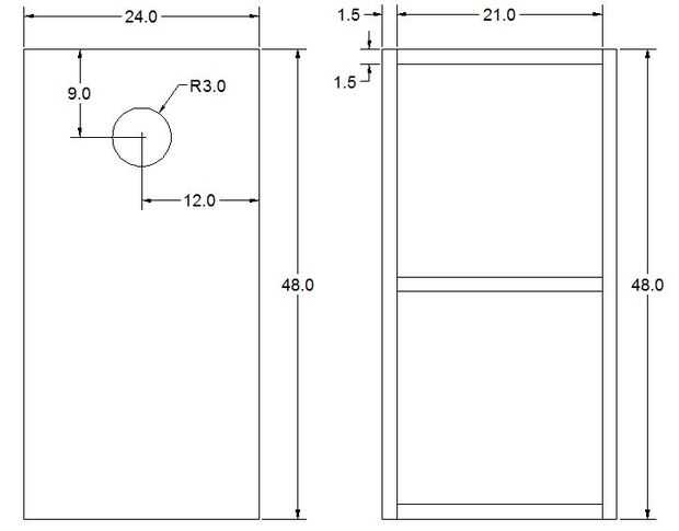 : #1 las dimensiones de cada bandeja es 2' x 4'. El agujero en el centro de cada placa es 6" de diámetro y está centrado en el 9" de la parte superior de la cubierta y 12" de cualquier lado. Cada fotograma consta de dos 48" longitudes de los lados y tres longitudes de 21" para la parte superior, media e inferior. Rasgó abajo 2 x 4 a 1-1/2 "x 1-1/2" usando una tabla vio reducir el peso total de los tableros y para ahorrar en madera.