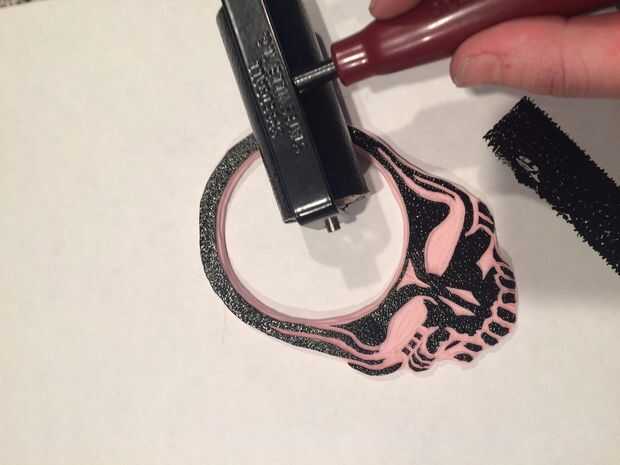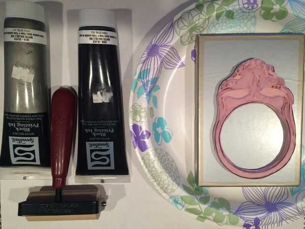 A continuación, rodillo de la tinta sobre el sello, tratando de mantener el rodillo como nivel paralelo como usted puede con la superficie de sello plano (para sólo cubrir las partes va - mantener los bordes de los espacios vacíos/negativo).