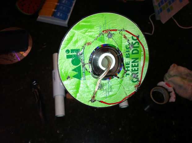 Coloque los LEDS en el CD. He utilizado pegamento caliente pero se puede usar pegamento normal, así