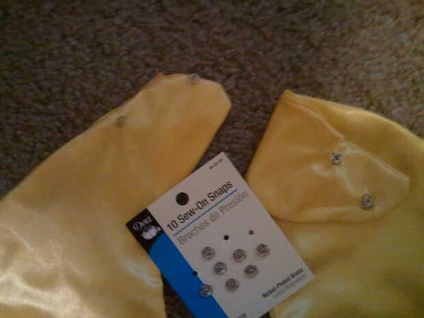 - Cortar dos agujeros pequeños y utilice la cinta de antes para cerrar la capa en el cuello.