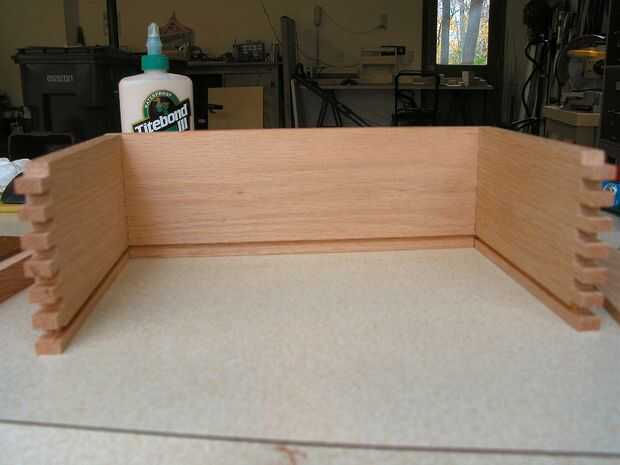 -Después corte todas las caja juntas, un 1/8" surco tiene que ser cortado en los lados de la caja para dar cabida a la parte inferior de la caja de madera. Localice la ranura de 1/4" de la parte inferior de los lados de la caja.