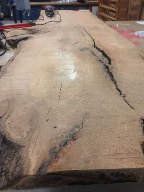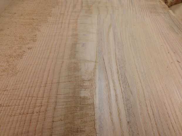 Después de cepillado hacia abajo, nos estaba parado para arriba en la tienda caliente para una semana y media para que las fibras resolver, flex, Copa y antes de tomar un pase final a ambos lados de la torcedura. La losa había terminado en alrededor de 2" después de todo esto.
