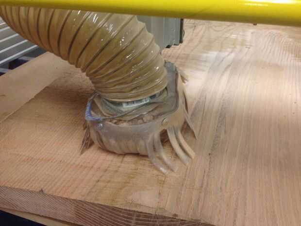 Nos CNC ruteados usando un 2" cepillado algo similar a este, sólo un poco más pequeño. El mejor final que encontramos mientras diferentes alimentación y velocidades fue 14.500 RPM, 250 ipm, con un ancho de paso de 20% y un 1/16 DOC. Esto podría hacerse un poco más o menos agresivo dependiendo de su mesa de fresadora o preferencias personales.
