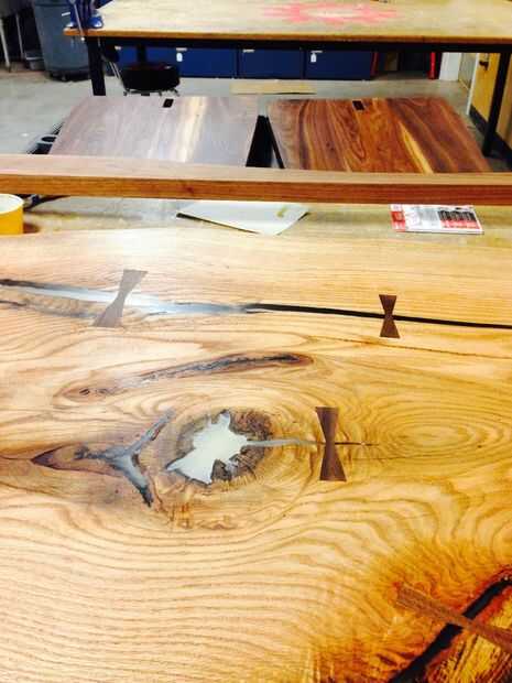 Inicialmente probamos usando planos de mano para suavizar la parte superior, patas y corredor. El grano era un poco salvaje y lanoso en cada una de las piezas para sea eficaz. Finalmente dio para arriba los planos de la mano de un raspador, luego lijada a 220. En el camino, salpicaron algunos espíritus minerales sobre las piezas para ver cómo el grano pop.