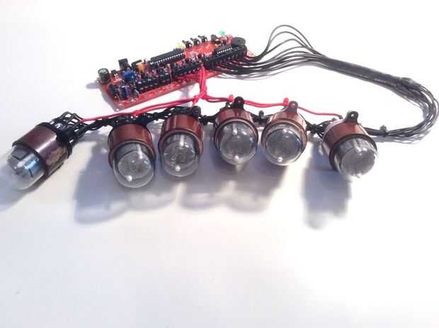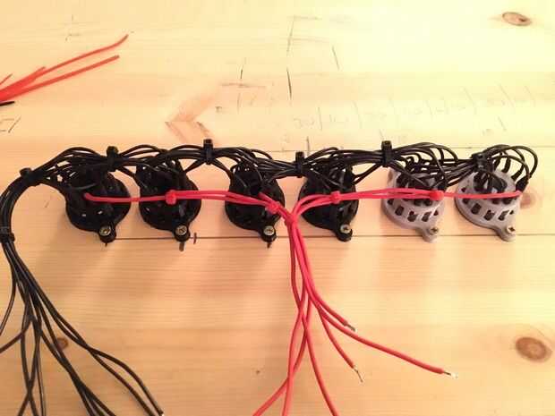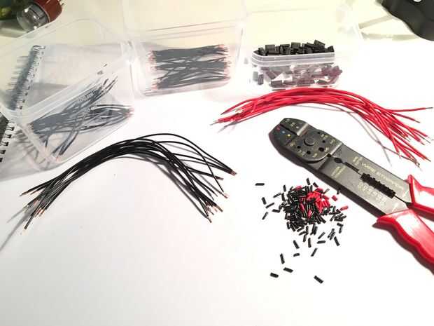 Plegadores de Molex fueron conectados a los cables, todo espaciados hacia fuera diferente para permitir el espacio entre tubos. Una tabla de madera fue utilizada para mantener los enchufes y cables son insertados lazo envuelto.