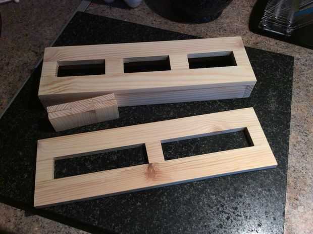 Una serie de viajes a diferentes tiendas DIY hecho claro que 30 x 10 mm no era un tamaño 'fuera de la plataforma'. Así que necesito tener algunas cortadas a la medida. Encontré a un comerciante de madera en Doncaster que afirmaba que ningún trabajo es demasiado pequeño. Después de una consulta de correo electrónico y una sábado por la mañana en coche, esto fue demostrado verdadera. Mi lista de dimensiones se convirtió rápidamente en una bolsa de madera. Esto fue pegado, afianzado con abrazadera y lija para formar el marco principal, listo para el acrílico.
