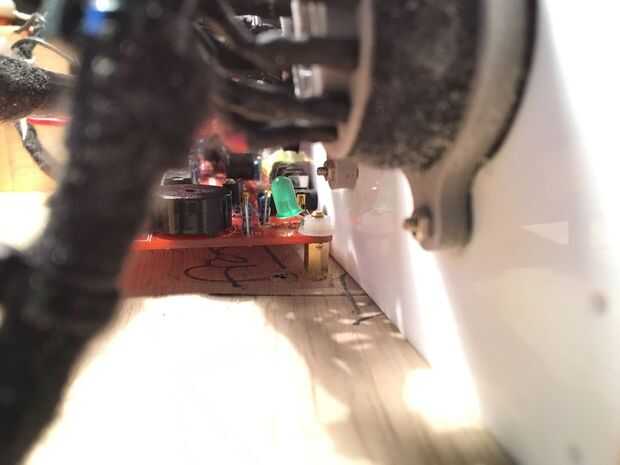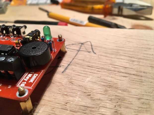 Los indicadores de INS-1 fueron empujados a través de los orificios de 6mm en el frente de acrílico y cables ponen a través de los orificios de 10mm en el acrílico de la toma de corriente antes de que el frente estuviera pegado. A continuación, la Asamblea entera frente a los tubos fue pegada y fijada a la base de roble.
