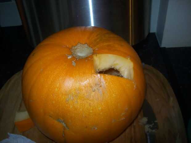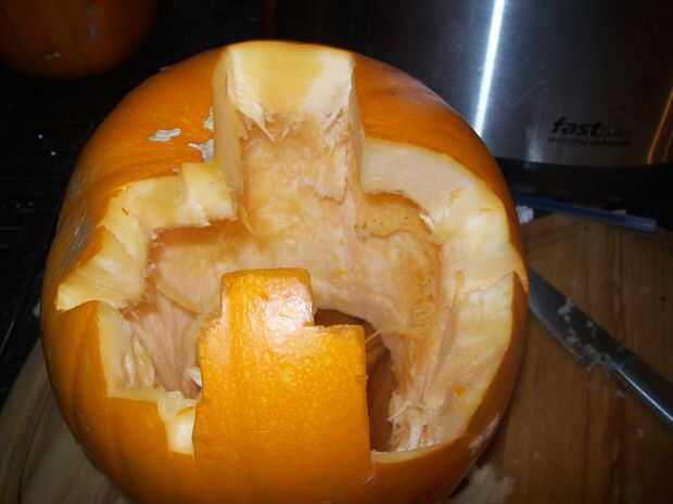 Nota: Cuando usted corta la parte inferior de la calabaza a que un montón de adentro hacia afuera, así para guardar presentacion.