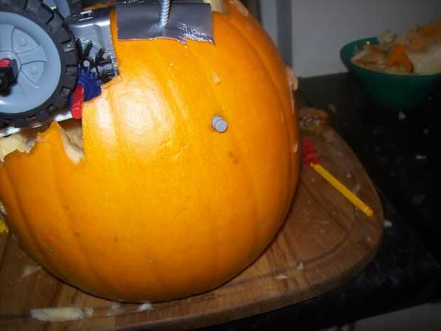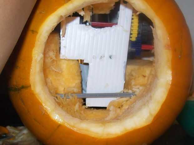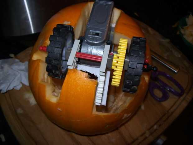típicamente calabazas son talladas en caras de miedo, gatos negros y murciélagos volando para Halloween. Cómo de original. En su lugar, enciende tu porche por la noche con un diseño único que incorpora robótica. Aquí es cómo crear una talla para tu c