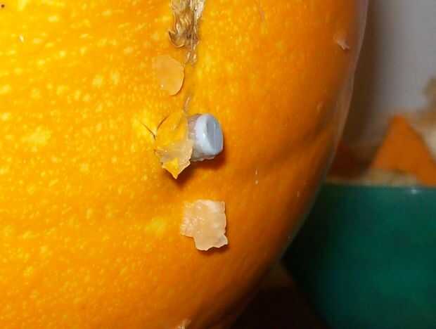 A continuación con una varilla gris Pega a través de un lado de la calabaza y el centro (va justo encima del correx como en cuadro 4) y por el otro lado.