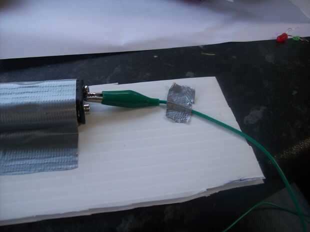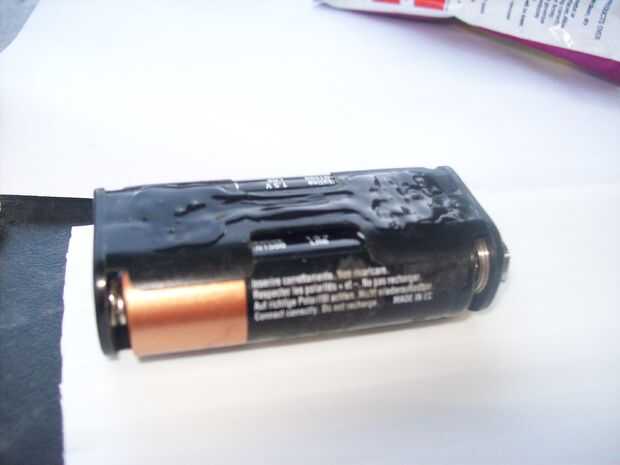 Primero pegar el paquete de la batería en su lugar y mantenga pulsada con pato cinta a algunos correx. Luego clip en un clip de crocadile a la batería y sujetarlo con duck tape.