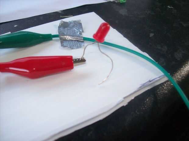 Primer clip de la crocadile clip que usted simplemente engancharse el interruptor a uno de los LED.