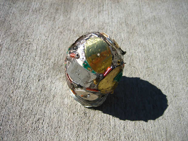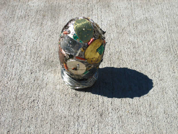 Resulta que la acera es un excelente lugar para tomar fotografías de un huevo brillante. Imaginar es el futuro y toda la tierra es un desierto y Robo-huevo es tu regla! ¡ Sí!