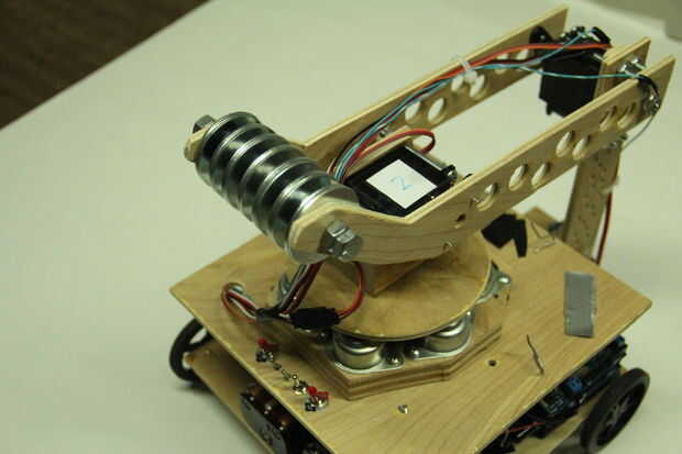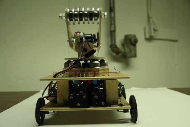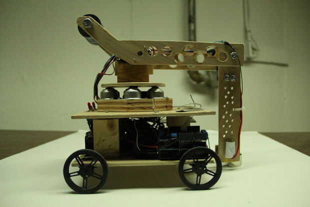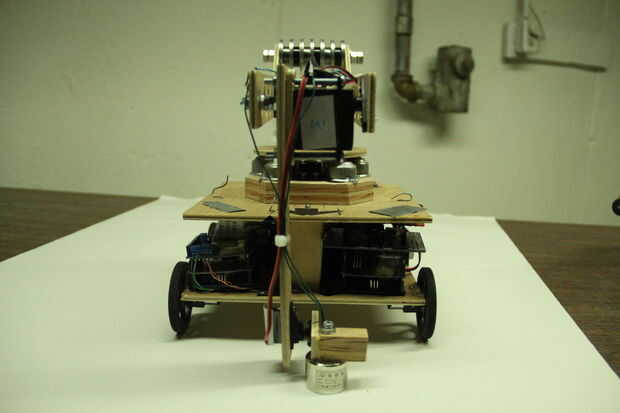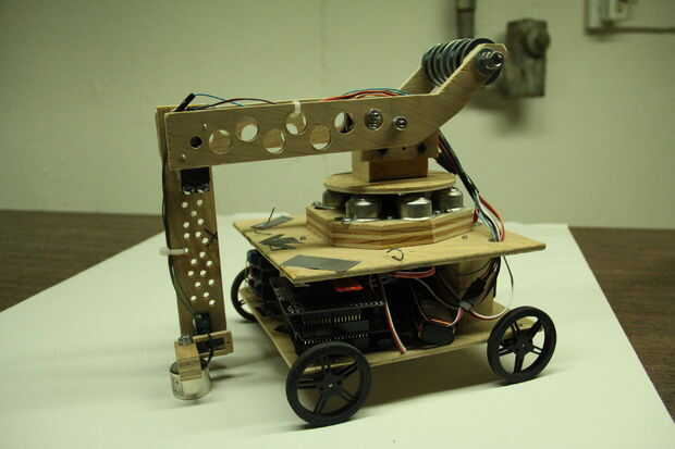 El móvil de Robo consta de dos partes: un chasis y un brazo robótico. El brazo fue diseñado para ser capaz de recoger objetos, moverlos y colocarlas en lugares específicos. También fue diseñado para tener una sólida gama de movimiento y deben ser capaces de mover objetos con peso razonable. Este brazo luego se montarían en un chasis que luego pueden moverse como un coche. Puesto que el chasis era más fácil de hacer, va a empezar este Instructable con el chasis, y luego moveré para el brazo robótico. Este robot fue construido puramente de cero. (Bueno, tal vez no los motores, el Arduino es o las ruedas, etc.. "Pero no kits o brazos robots pre-construidos o chasis se utilizan en este robot).