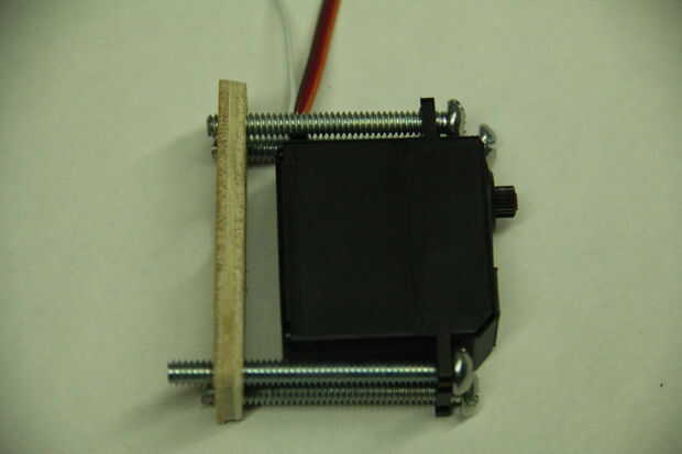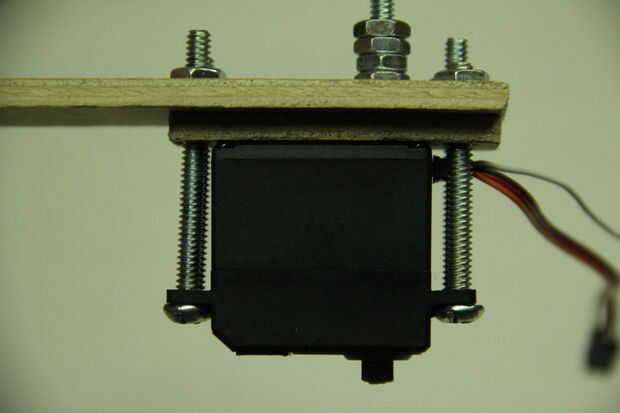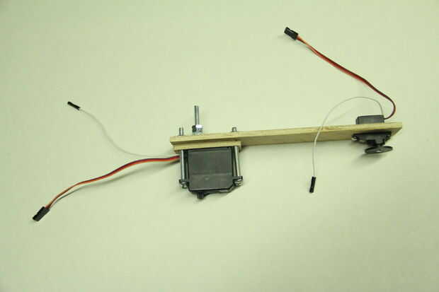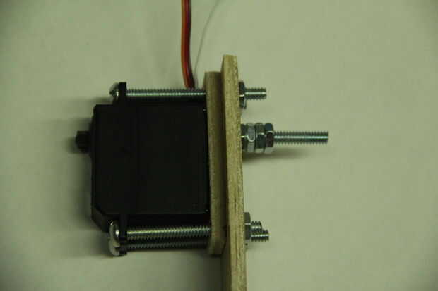 La segunda articulación no fue diferente de la primera junta. En este empalme usé el montaje mismo como el primer brazo. Puesto que este brazo iba a ser el controlador y el brazo real sería imitar este brazo, tuve que hacer lo más similar posible para que electrónica fueron fácil. Lo hice mi segunda articulación no fue diferente de la primera. Igual taladrar cuatro orificios en la madera contrachapada y a montar el servo de nuevo sobre él.