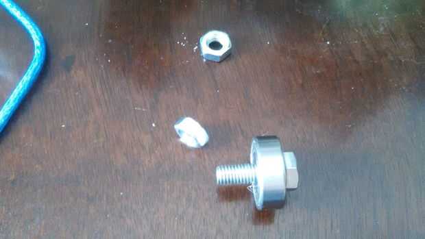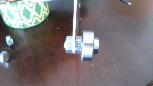 2. Deslice un cojinete en cada tornillo y tornillo en una tuerca, apretar.