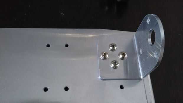 2. Alinee los orificios con el borde curvado de la placa base hacia arriba (esto permitirá más espacio para la electrónica) e inserte un tornillo con arandela de afuera hacia adentro. Enroscar la tuerca, apretar bien.