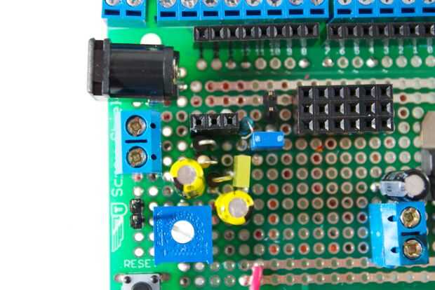 En el proto-screwshield queremos diseñar para máximos íconos. Por lo tanto, usamos las cabeceras para el LM317 para enchufar en el caso del caso improbable de que el LM317 deja de funcionar y necesitamos reemplazarlo.