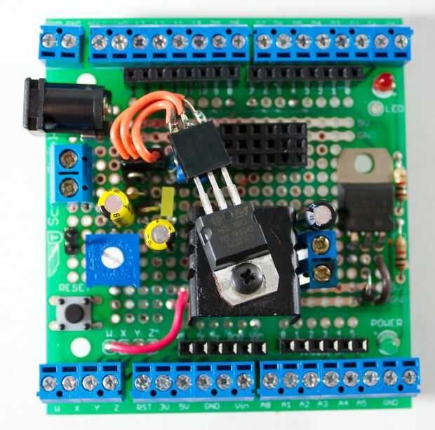 Además de los circuitos creados en los pasos anteriores, hay algunos otros componentes que tienen que ser montados en el escudo.
